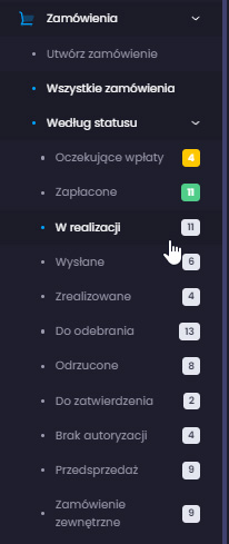 Klikając na wybrany status, automatycznie zostaniesz przekierowany do widoku, który wyświetla jedynie zamówienia o tym konkretnym statusie.