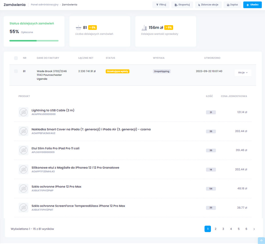 Dzięki tym opcjom masz pełną kontrolę nad zarządzaniem zamówieniami na platformie, co zapewnia wygodę i efektywność w procesie obsługi zamówień.